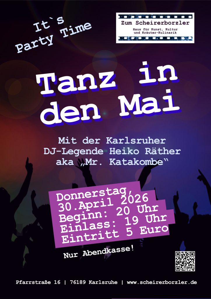 Zum Finale unserer Frühjahrs-Saison 2026 folgen wir wieder einer liebgewonnen Tradition und laden euch herzlich ein, mit uns in den Mai zu Tanzen. Wir freuen uns sehr darüber, dass wir für diesen Abend wieder unseren Karlsruher Kult-DJ Heiko Räther gewinnen konnten – besser bekannt als „Mr. Katakombe“. Absolut Tanzbare Musik aus den 70er, 80er, 90er und 2000er Jahren.